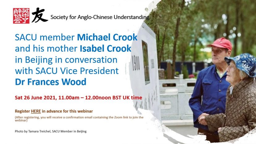 Michael Crook was in conversation with SACU Vice President Dr Frances Wood, telling the fascinating story of the Crook family in China and their connections with many SACU friends.